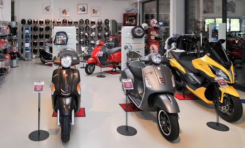 In unseren Ausstellungsräumen finden Sie immer ein großes Angebot an neuen und gebrauchten Rollern.